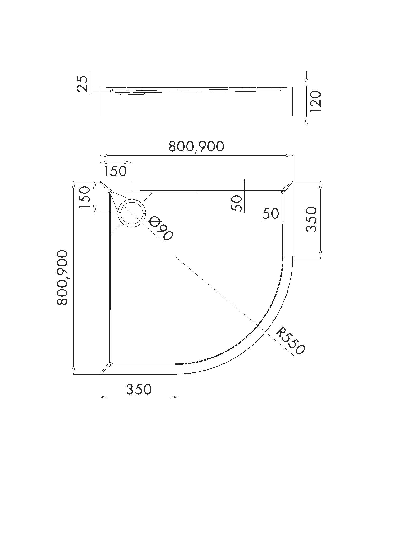 Schedline Cameron Black Stone brodzik półokrągły 90 cm 3ST.C1O-9090/C/ST