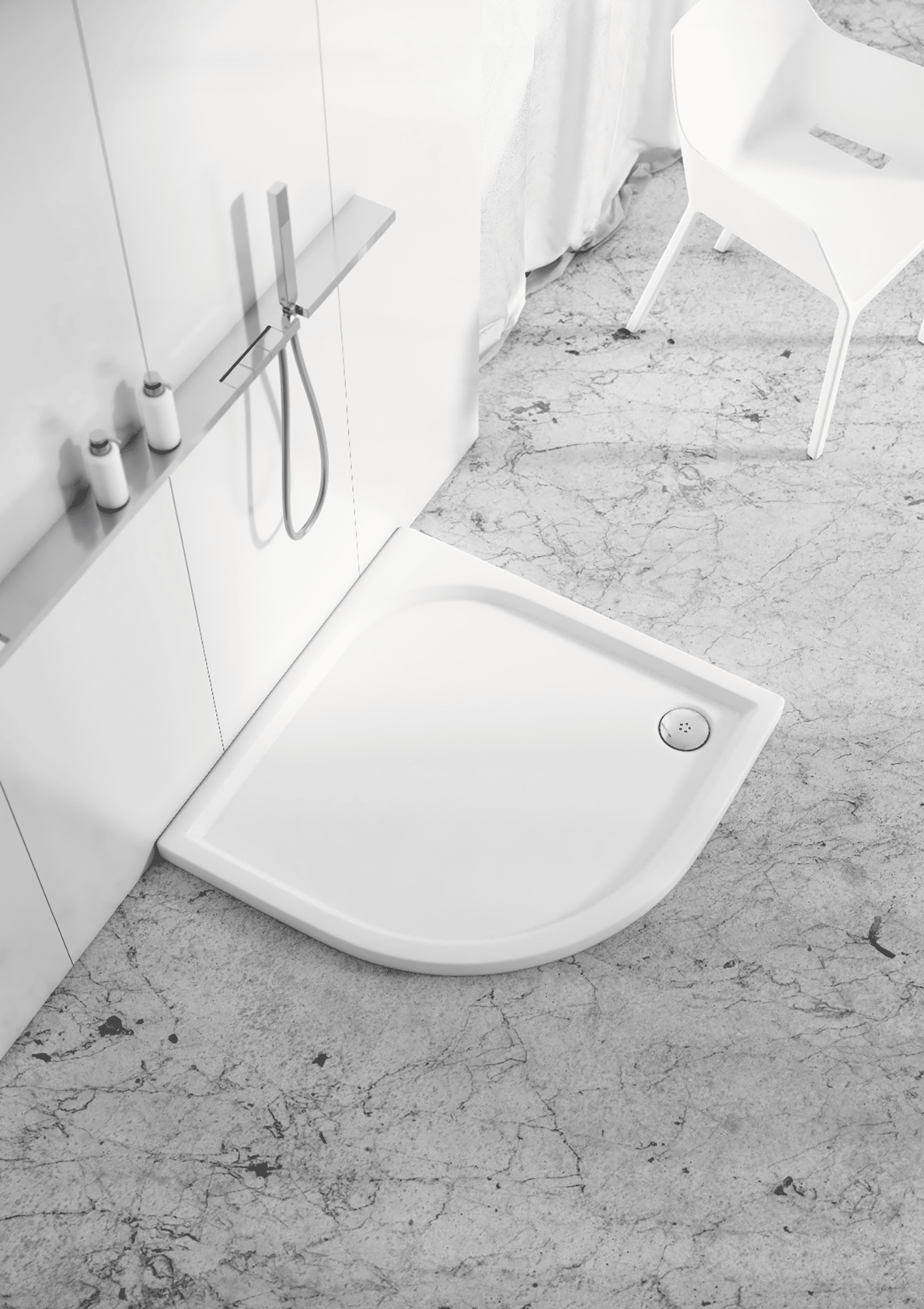 z minimalną spoina silikonową dzięki idealnie pionowym ściankom panelu bocznego oraz wyostrzonym krawędziom brodzika.