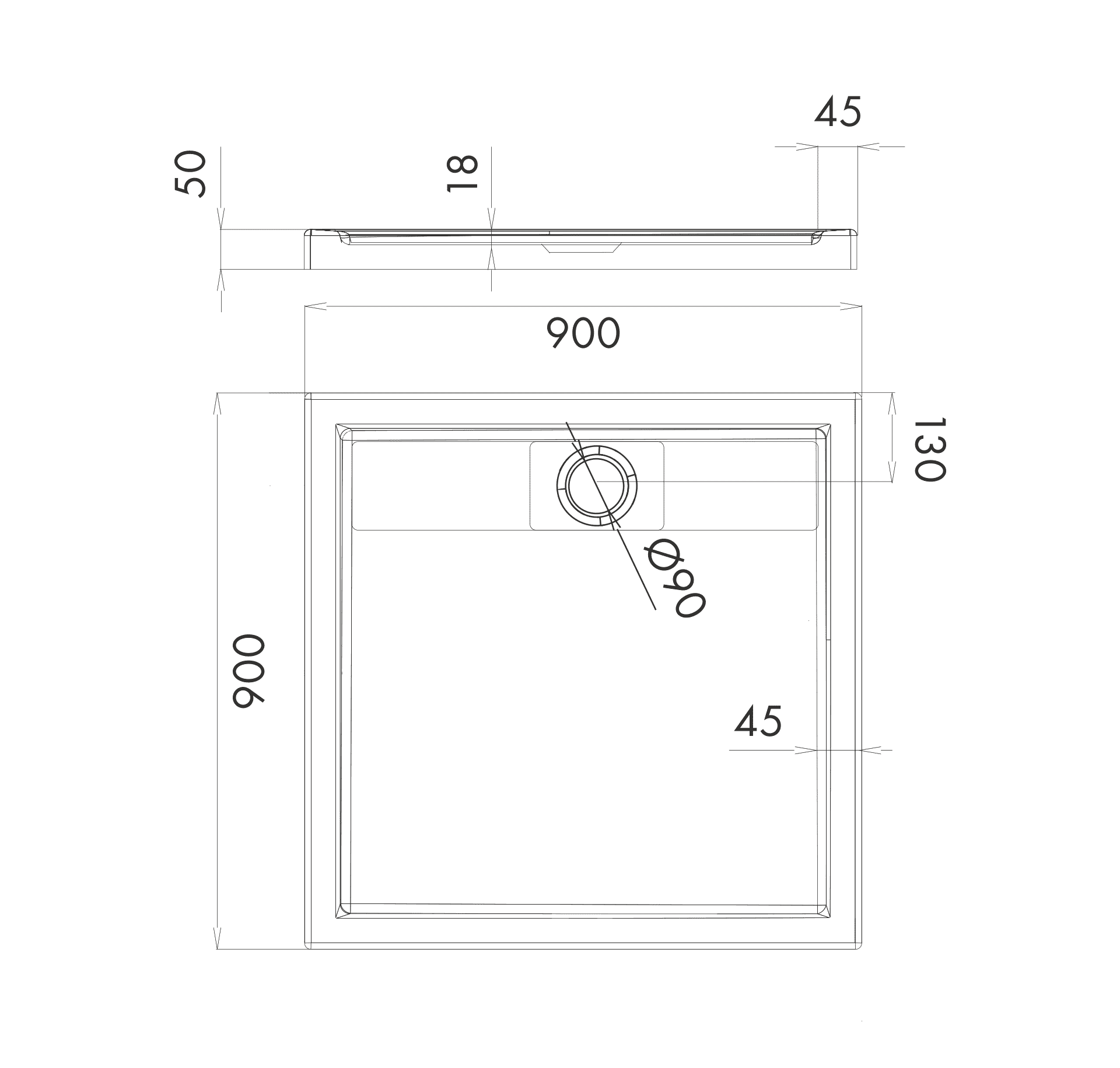 Średnica odpływu: 90 mm