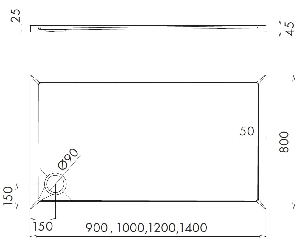 Średnica odpływu: 90 mm