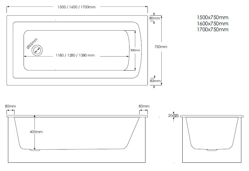 Schedline Fair Set wanna 150x75 cm z nośnikiem 3WSP.FS1P-15075