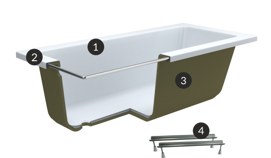 - Niezwykła sztywność całej konstrukcji, oraz metalowe zbrojenie na całym obwodzie rantu wanny