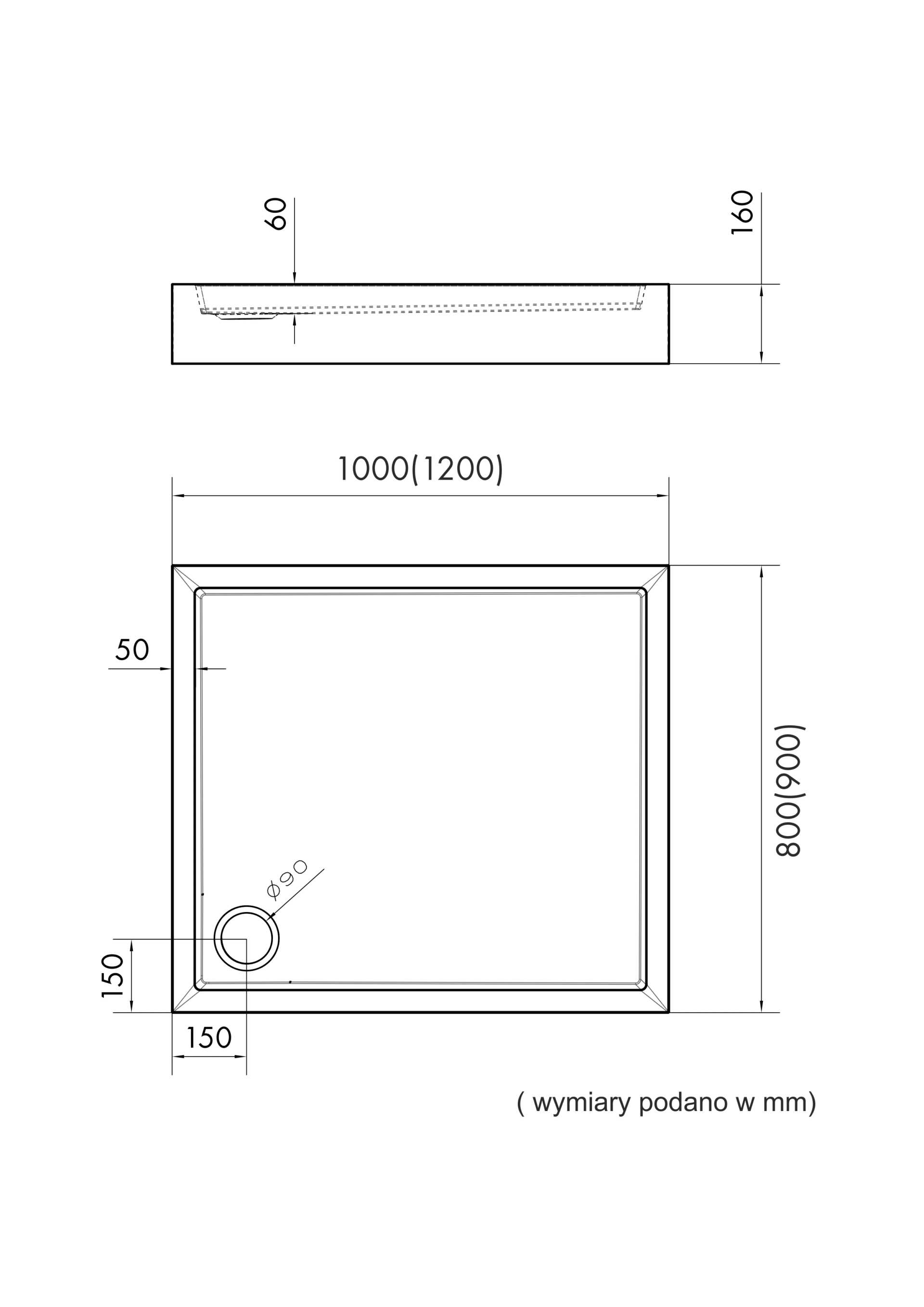 Schedline Favory Plus Black Stone brodzik 80x100 cm 3ST.F1P-80100/C/ST