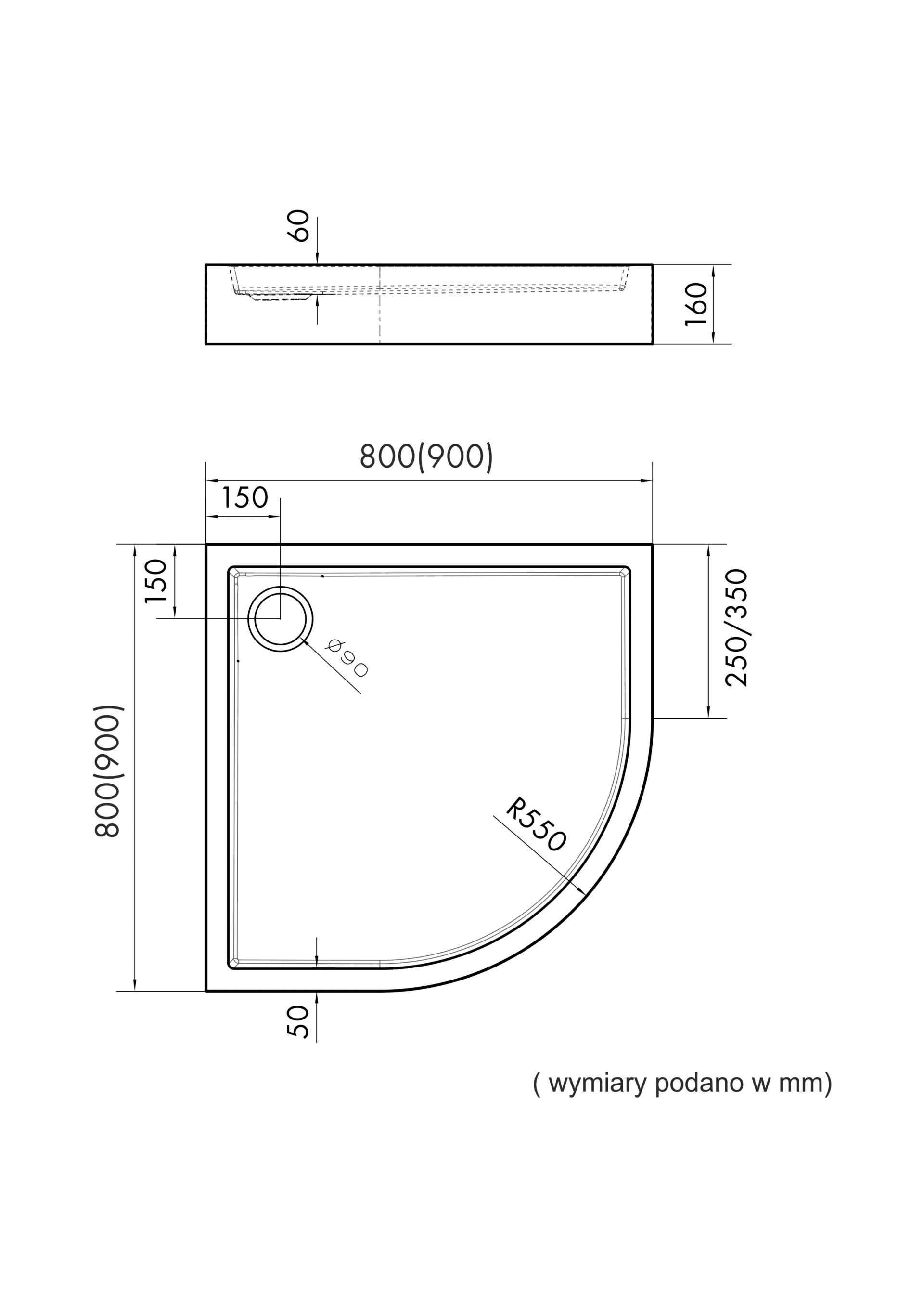 Schedline Favory Plus brodzik półokrągły 90 cm 3ST.F1O-9090