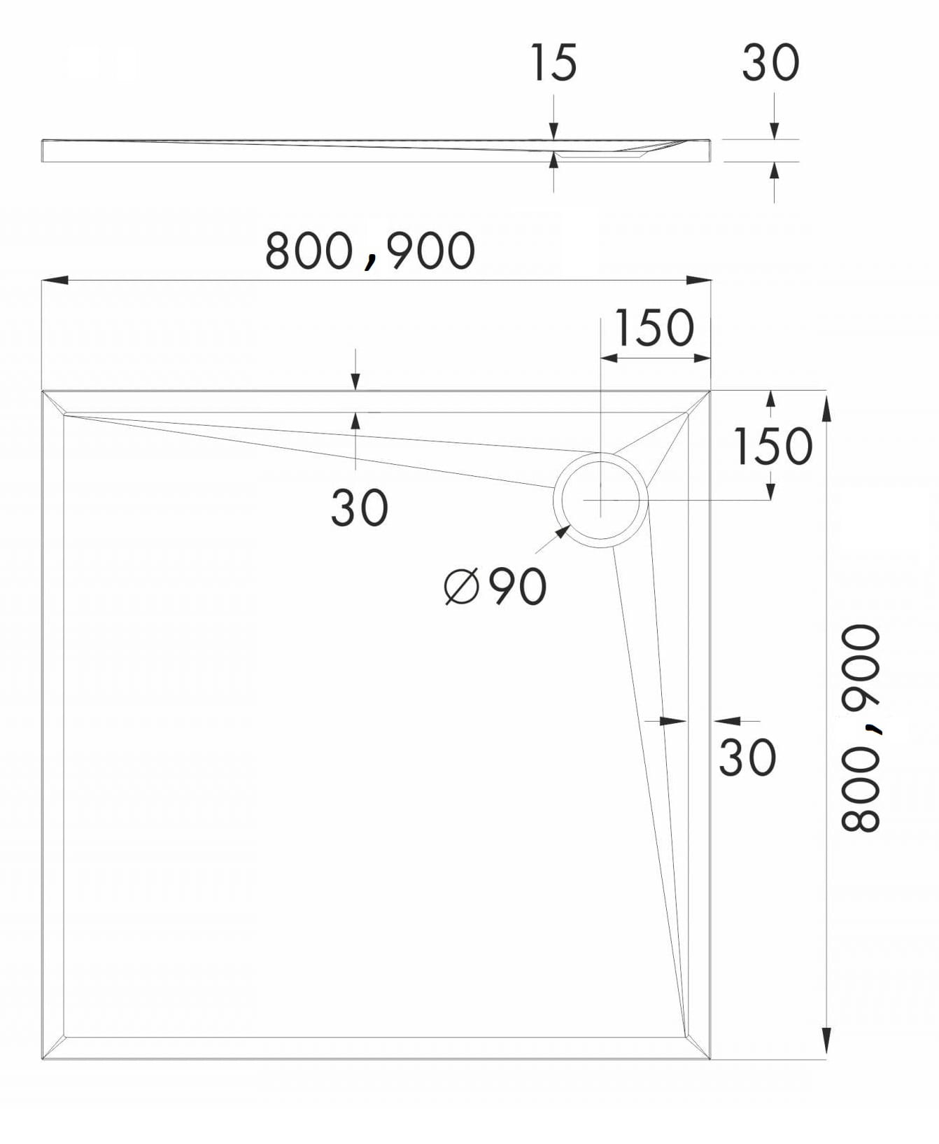 Średnica odpływu: 90 mm