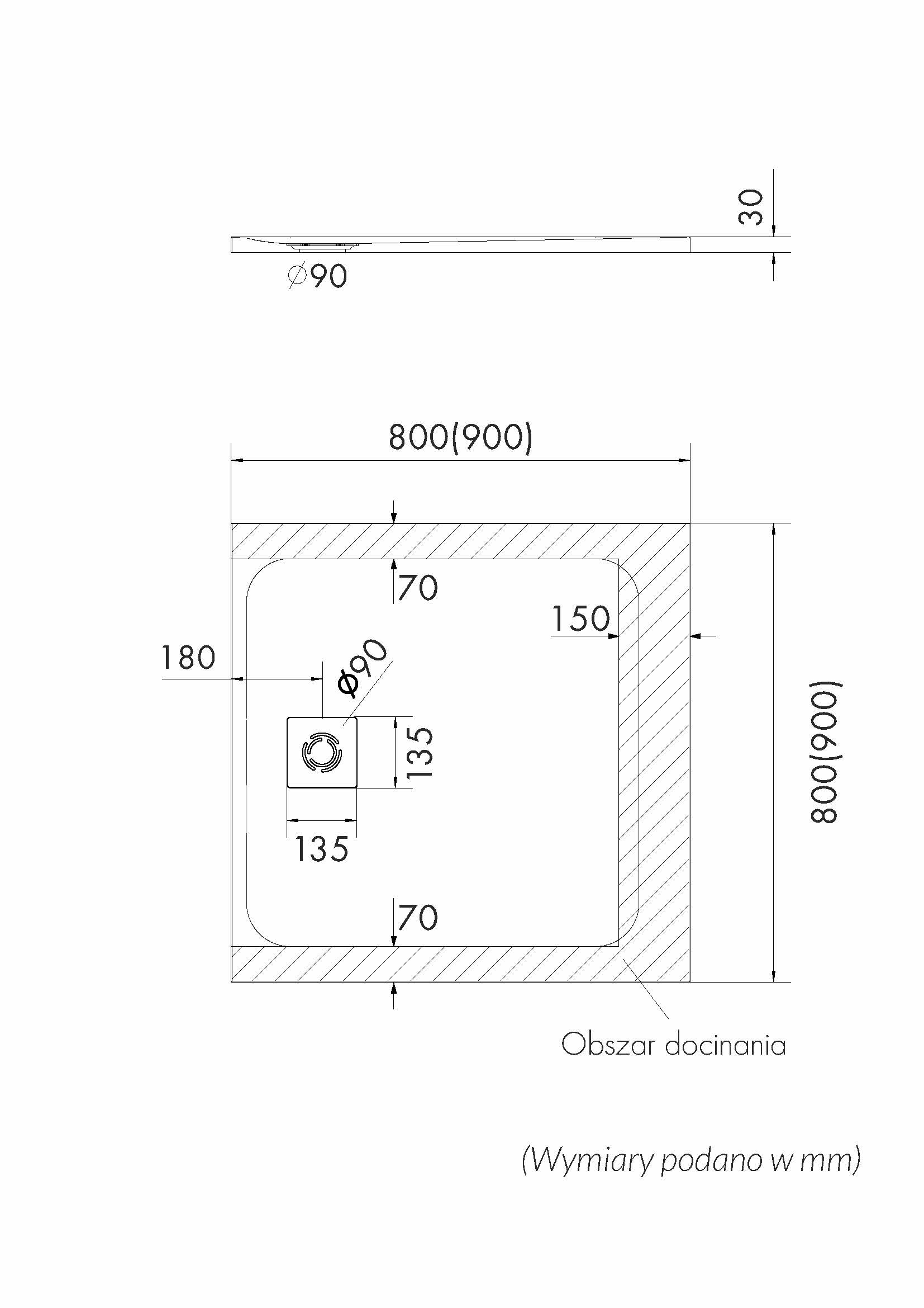 | Kształt: kwadratowy (odpływ na środku boku) | |