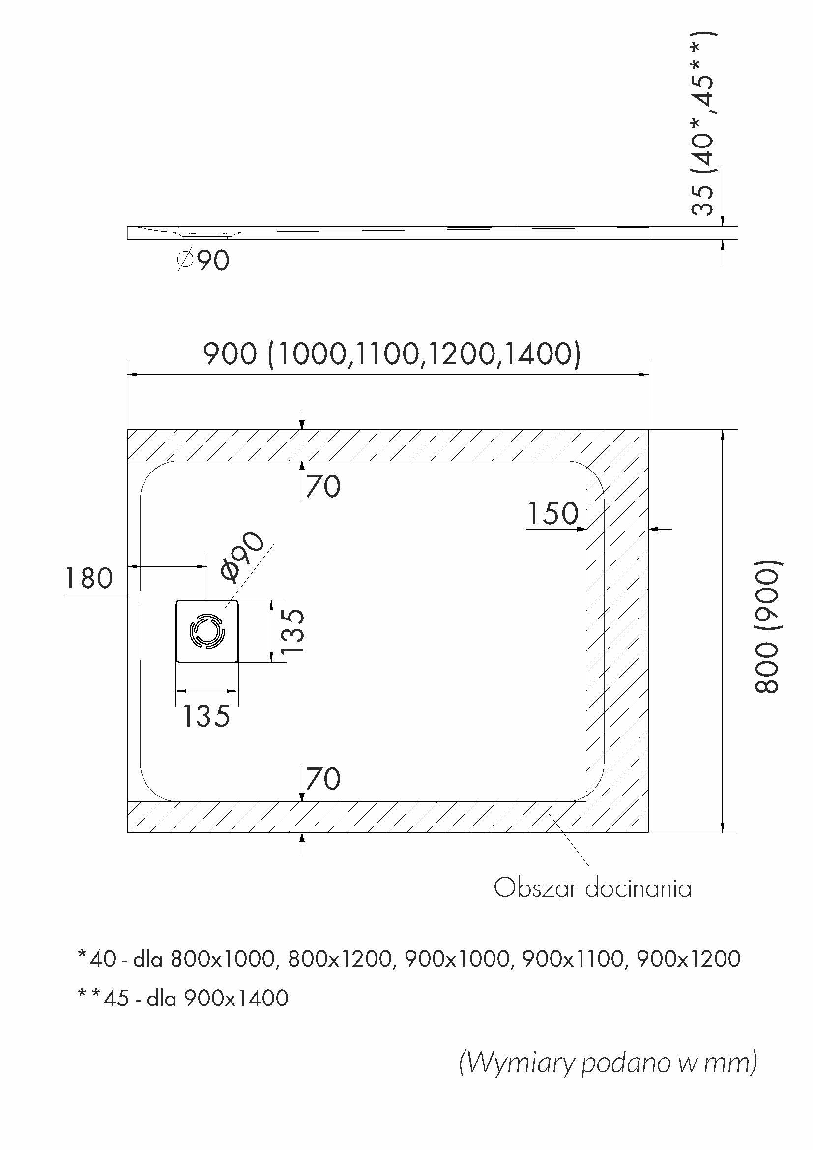 Schedline Magnific White Stone (biały kamień) - brodzik prostokatny 90x140 cm 3SP.M1P-90140/B/ST-M9/B/ST