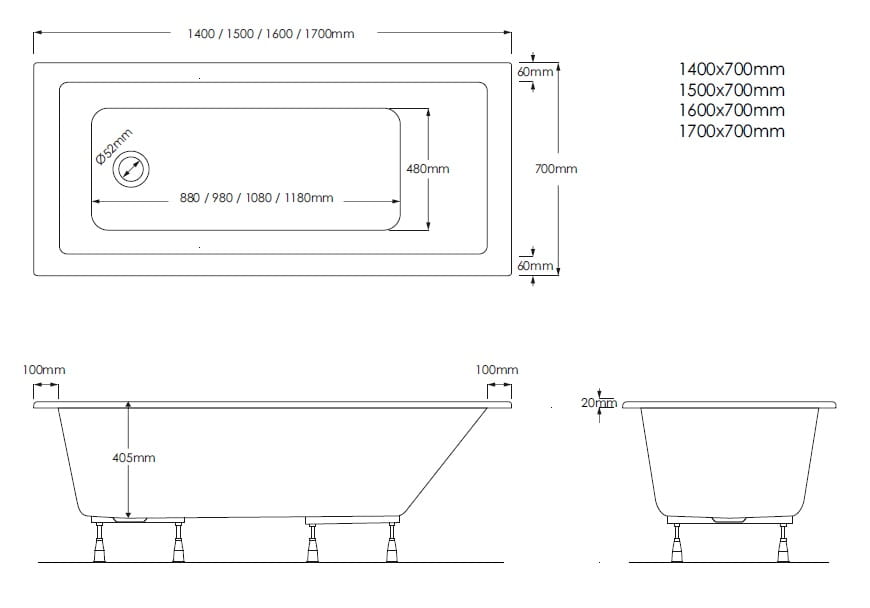 Schedline Milos wanna 150x70 cm 3WSP.M1P-15070