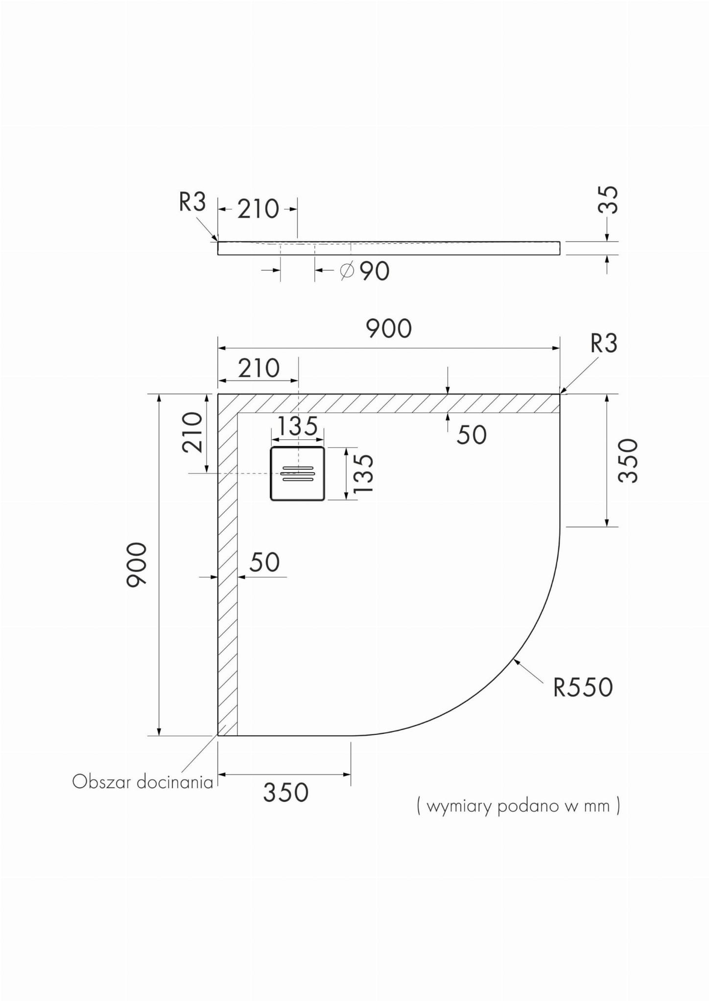 Średnica odpływu: 90 mm