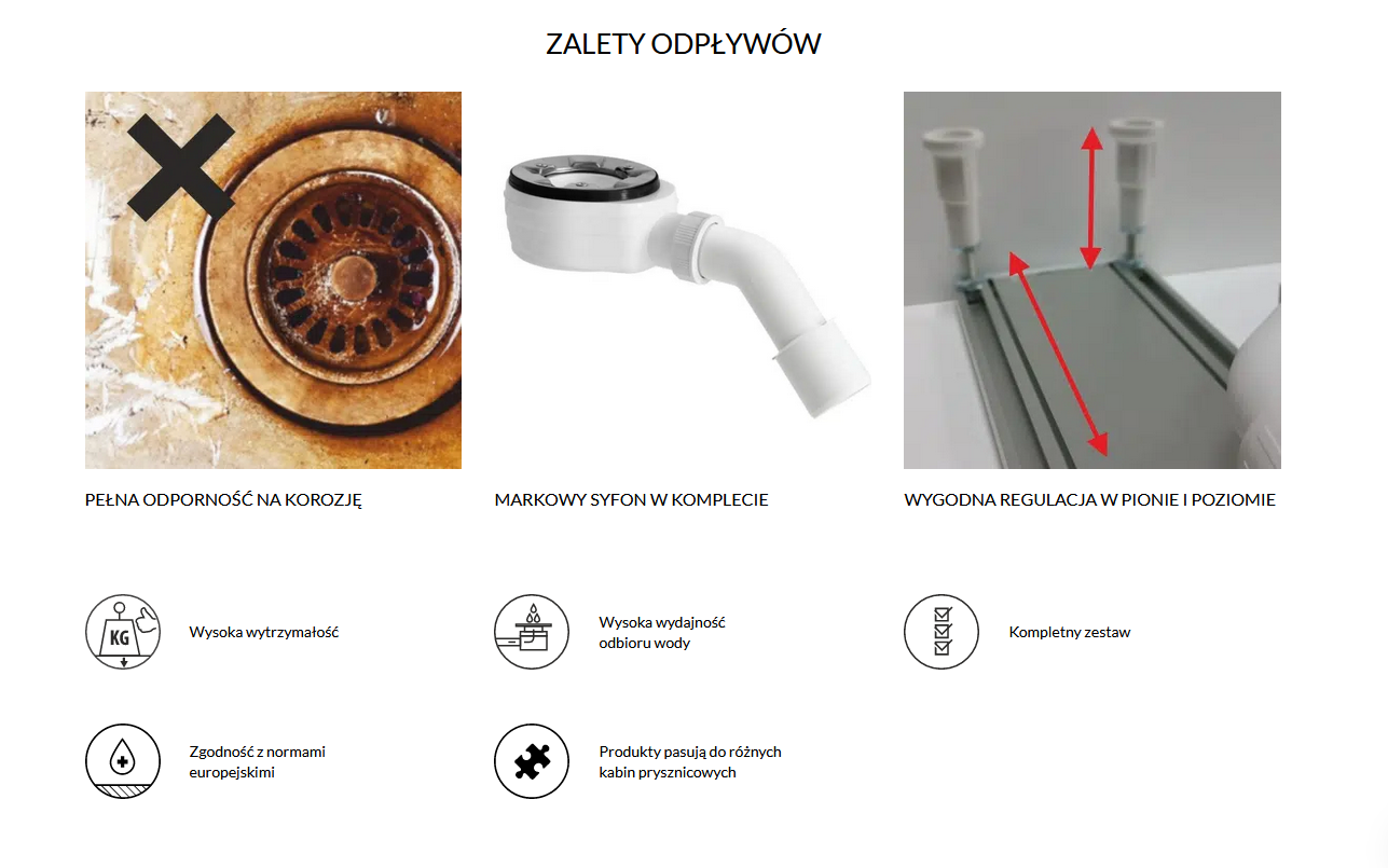 Prysznic z odpływem liniowym to idealna propozycja dla dostępnej łazienki. Bezprogowa powierzchnia w pełni pokryta płytkami jest możliwa tylko dzięki odpływom liniowym. Seria Regular Line charakteryzuje się niezwykłą szczelnością rynny odpływowej, uwarunkowaną unikalnymi procesami technologicznymi w produkcji. Odpływ w całości jest wykonany z anodowanego aluminium, które gwarantuje odporność na działanie wody, czy korozję.