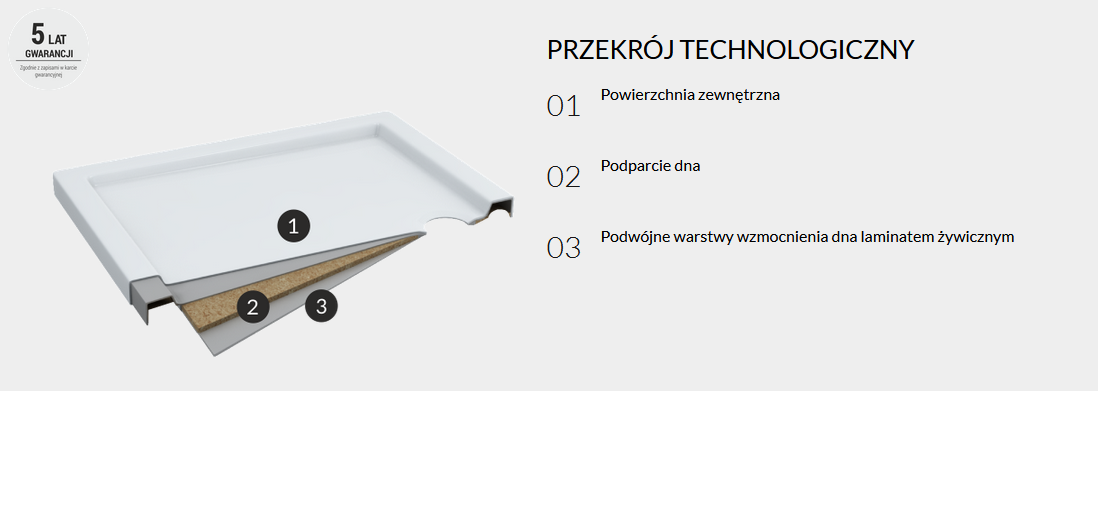 Zastosowana w brodziku powierzchnia – posiada właściwości antybakteryjne i antyalergiczne – Antibac ®. Oznacza to, że pozostawione bakterie nie namnażają się, z czasem ulegając samoistnemu unicestwieniu na powierzchni brodzika.