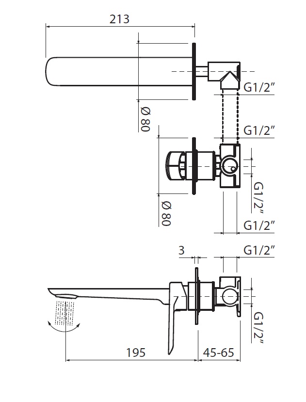 VEDO ALETTA Argento Bateria umywalkowa podtynkowa SZCZOTKOWANY NIKIEL VBA5012/SN