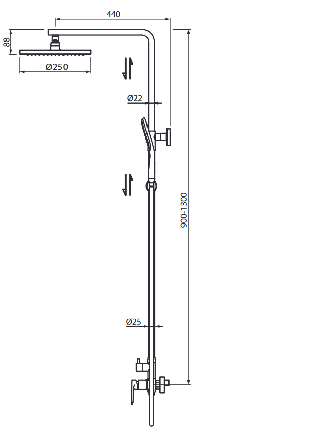 VEDO DESSO System natryskowy podtynkowy II chrom 25 cm Nr KAT: VBD4222/25/CH