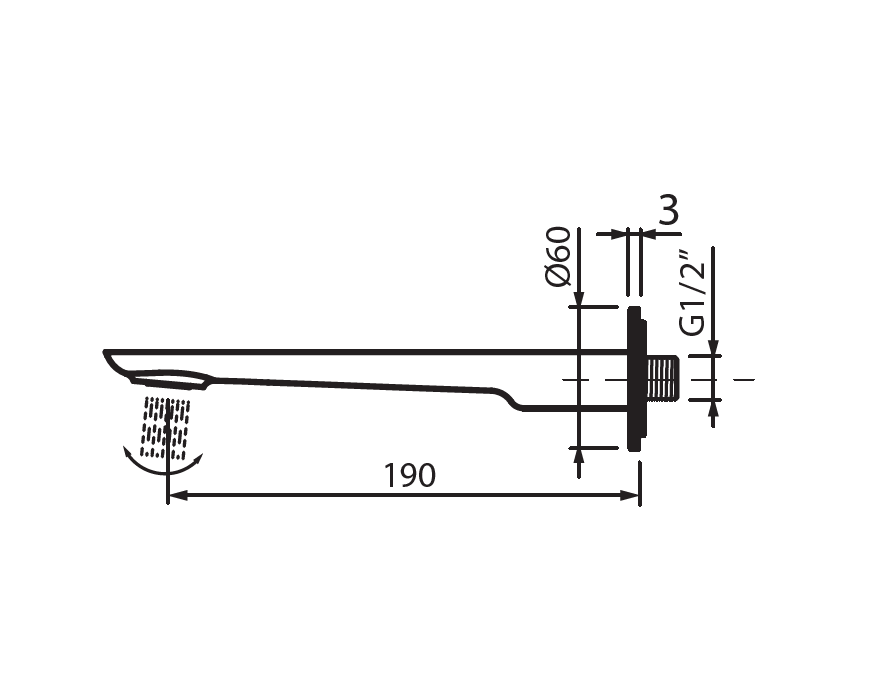 Długość od ściany do osi perlatora: 190mm