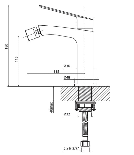 Bateria bidetowa, przystosowana do montażu z korkiem typu klik-klak(w komplecie)