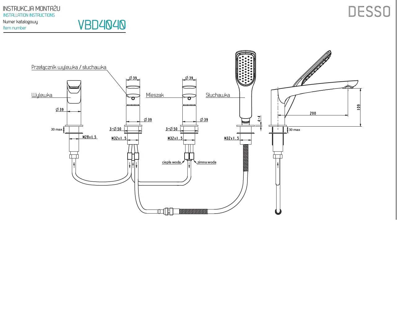 VEDO DESSO Bateria wannowa 4-otworowa chrom Nr KAT: VBD4040/CH