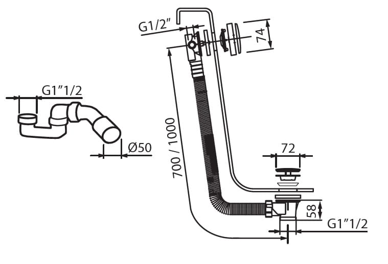 - Syfon z króćcem odpływowym 40/50mm