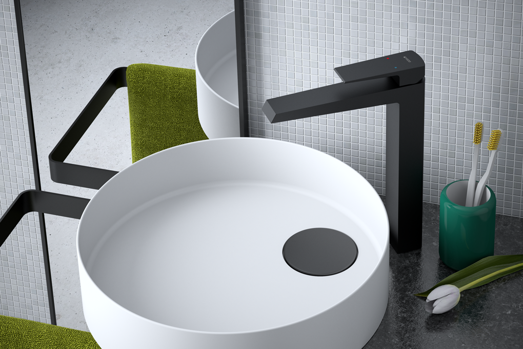 VEDO SETTE NERO Bateria umywalkowa wysoka+korek klik-klak czarny mat Nr KAT: VBS7003/C/CZ