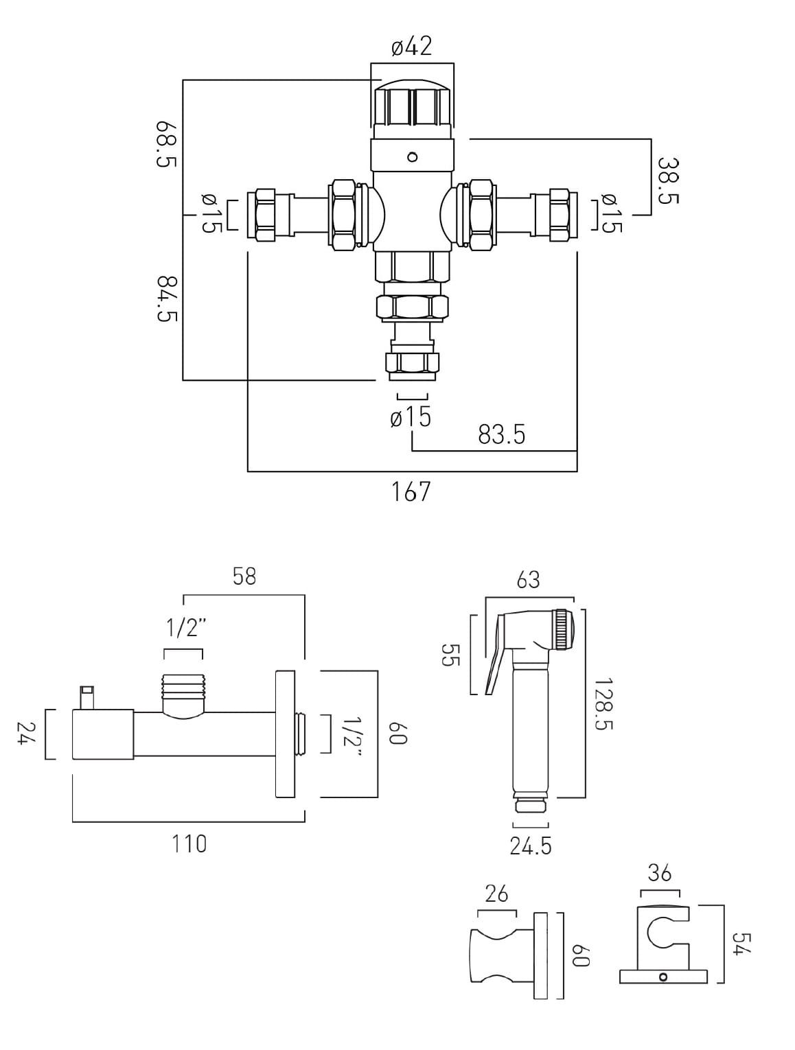 Vado Individual Bidetta z podtynkowym zaworem termostatycznym Gunmetal szczotkowany IND-SHATTAF/5001-BGM