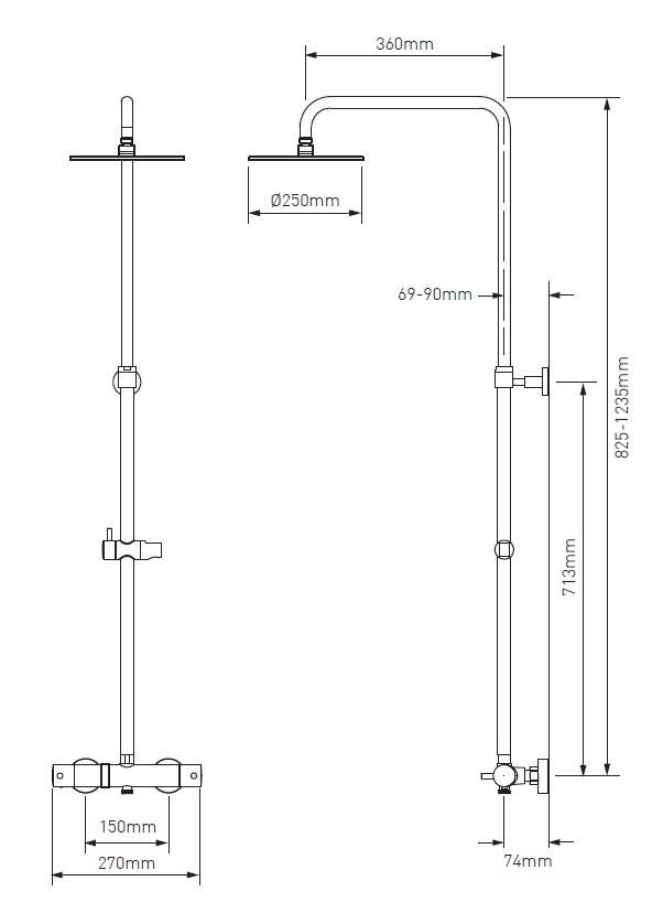 Vado Individual Kolumna prysznicowa naścienna z termostatem Gunmetal szczotkowany IND-149RRK-RO-BGM