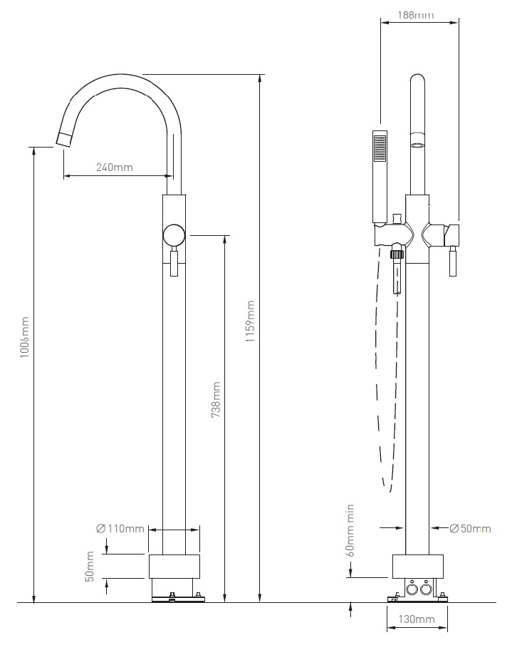 Vado Individual Origins Bateria wannowa podłogowa, wolnostojąca z zestawem prysznicowym Gunmetal szczotkowany IND-ORI233A-BGM