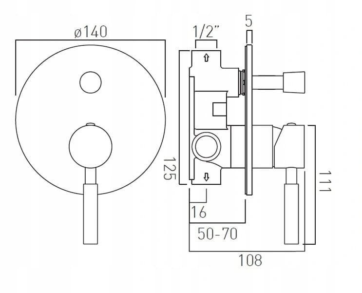 - montaż podtynkowy, głębokość: 50-70 mm