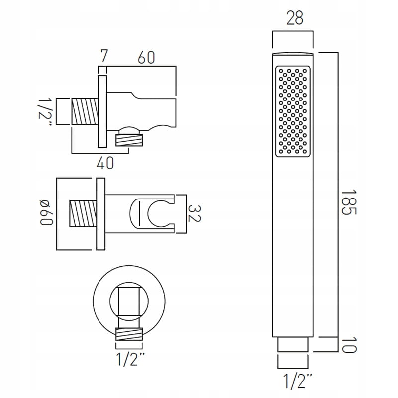 - zestaw prysznicowy: słuchawka, wąż prysznicowy gładki, uchwyt