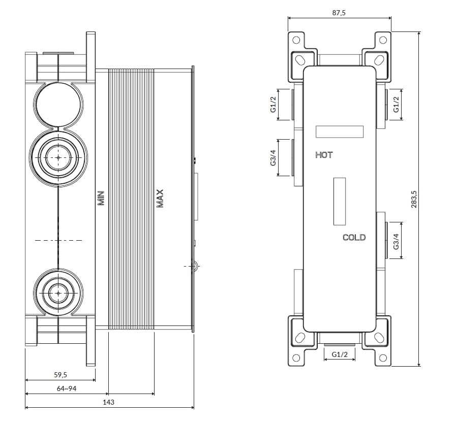 • dwa wejścia (na wodę ciepłą i zimną): 3/4”